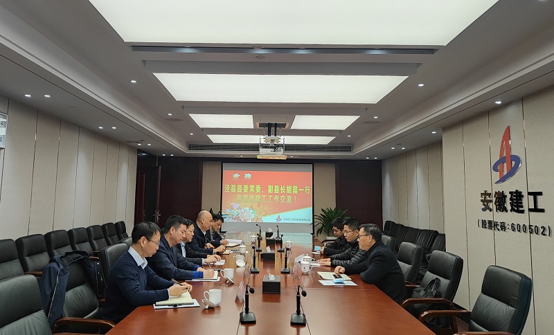建工控股黨委委員、副總經(jīng)理孫學(xué)軍與涇縣縣委常委、副縣長(zhǎng)胡晨一行座談交流