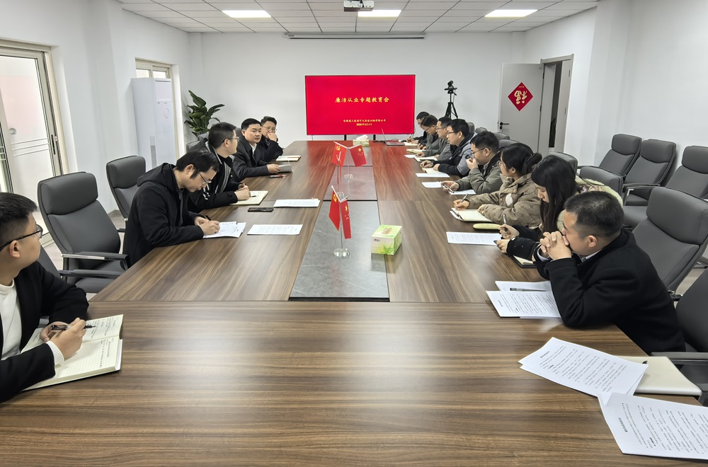 3月4日,建工投資G4231南京至九江高速公路安慶月山至??诙?、海口至望江段項目召開廉潔從業專題教育會,建工投資黨委委員、副總經理王銳出席會議。