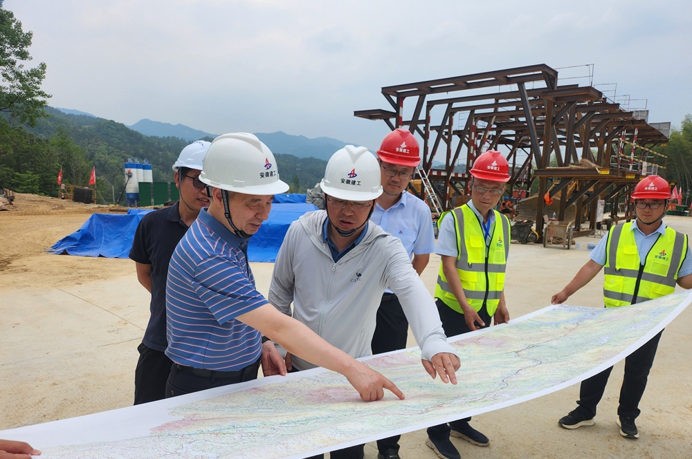 5月27日-28日,建工控股副總工程師胡六中一行赴集團天堂寨支線高速項目調研。