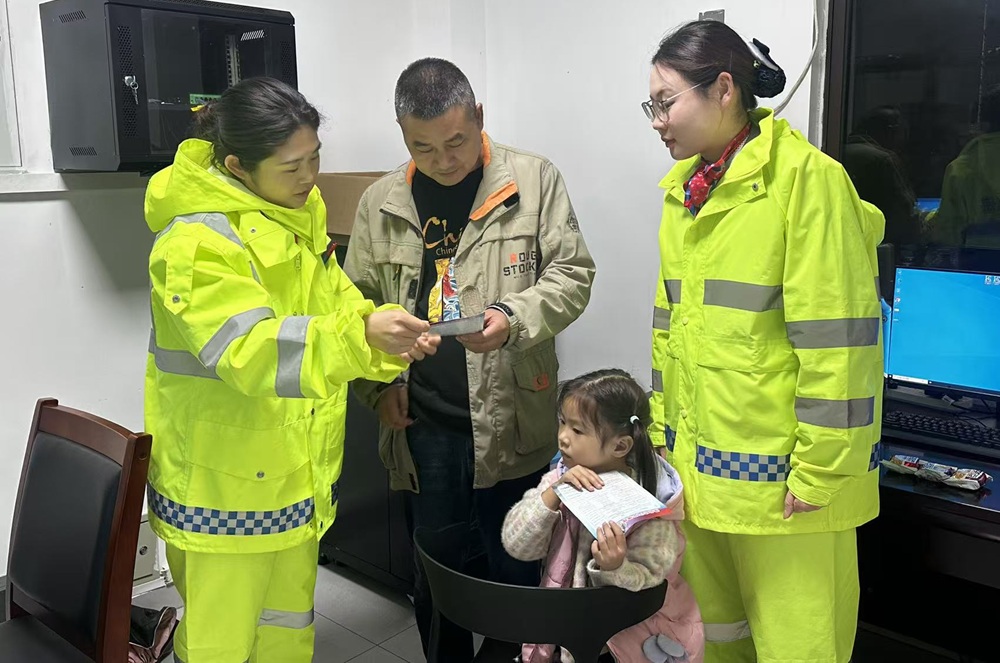 事故車輛駛離高速后,收費站工作人員為車上兒童遞上泡面與熱水,還提供了實用的維修聯系單,解決當事人的燃眉之急。窗外大雨滂沱,窗內溫情流動,便民服務廳成為司乘雨中溫暖貼心的“避風港”。